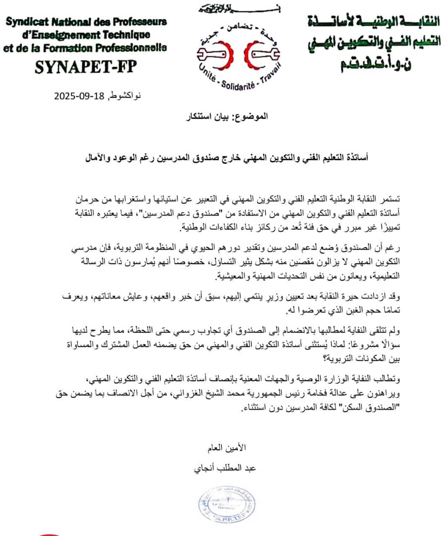 يشرفنا نحن الناجحين في اللائحة التكميلية لمسابقة اكتتاب 100 أستاذ لصالح مؤسسات التعليم العالي، أن نرفع إلى مقامكم السامي هذا الطلب، راجين من فخامتكم التفضل باعتماد هذه اللائحة وإلحاقنا بالناجحين الأصليين، وذلك استنادًا إلى المعطيات التالية: