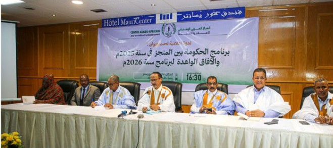 نظم المركز العربي الإفريقي للإعلام والتنمية، مساء أمس الأحد في نواكشوط، ندوة فكرية تحت عنوان: «برنامج الحكومة بين منجزات سنة 2025 والآفاق الواعدة لبرنامج سنة 2026».