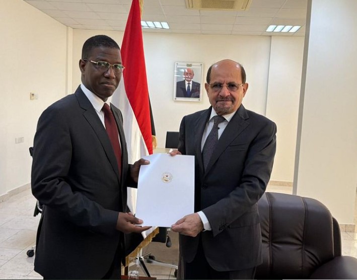 تسلم وزير الخارجية وشؤون المغتربين باليمن الدكتور شائع الزنداني، اليوم، في العاصمة المؤقتة عدن، نسخة من اوراق اعتماد الدكتور محمد ولد براهيم، سفير غير مقيم للجمهورية الإسلامية الموريتانية الشقيقة لدى اليمن.