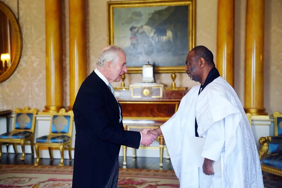 قدم با سامبا مامادو، اليوم الأربعاء بقصر باكنغهام، في لندن، أوراق اعتماده للملك تشارلز الثالث، ملك المملكة المتحدة البريطانية وإيرلندا الشمالية، بصفته سفيرا فوق العادة وكامل السلطة للجمهورية الإسلامية الموريتانية لدى المملكة المتحدة.