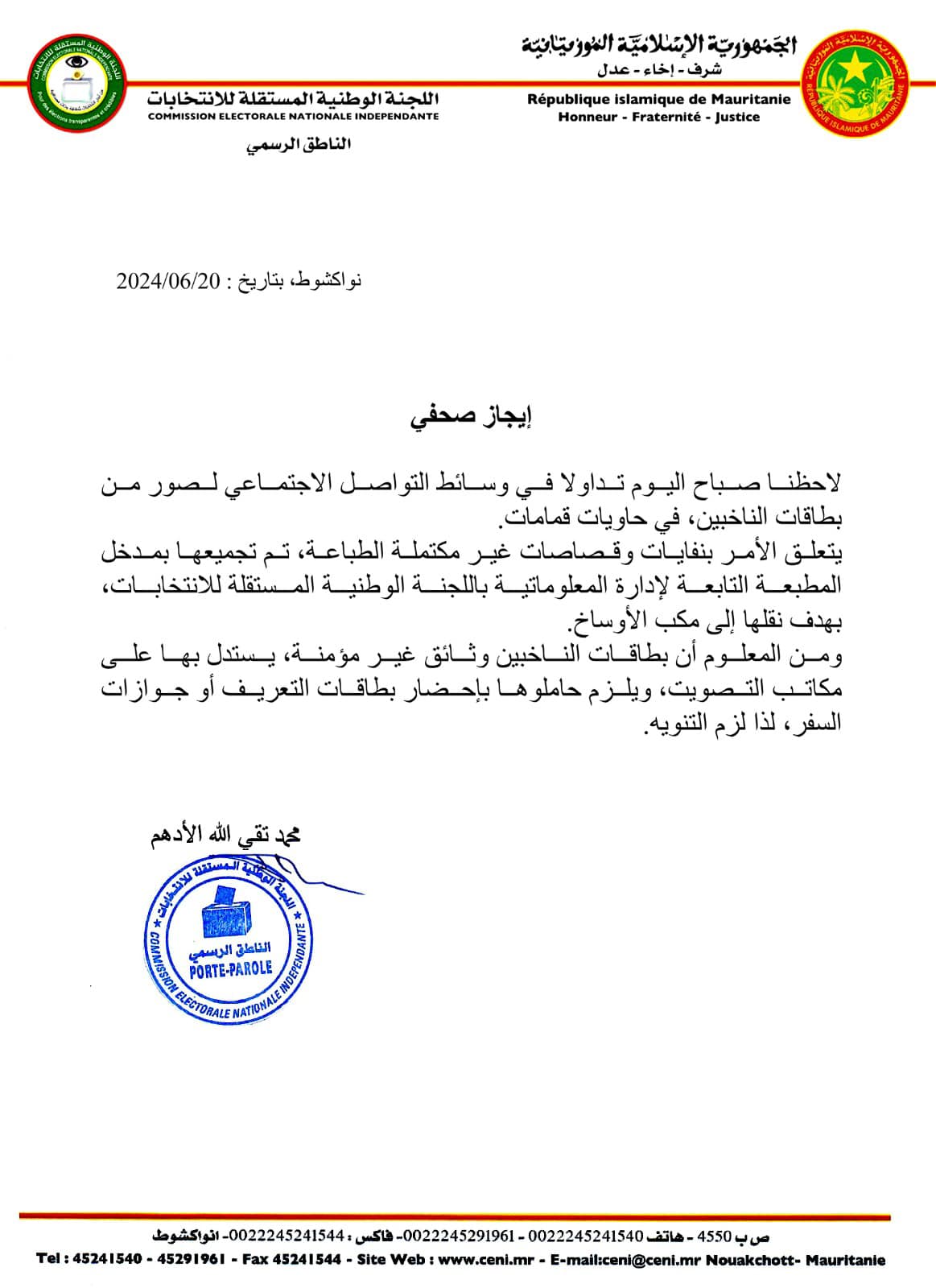 ودعا المترشح مؤيديه بمقاطعة اركيز، المحطة الأولى في ولاية اترارزة، إلى تهيئة أنفسهم للتغيير، وطالبهم بتبليغ اللجنة الوطنية المستقلة للانتخابات عن أي عملية تزوير قد تحدث يوم الاقتراع.