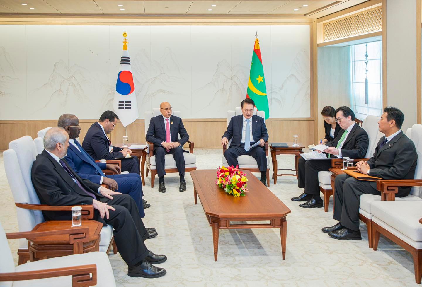 اسْتُقبل رئيس الجمهورية، محمد ولد الشيخ الغزواني، اليوم الأربعاء في القصر الرئاسي في سيؤول من طرف يون سوك يول، رئيس الجمهورية الكورية.