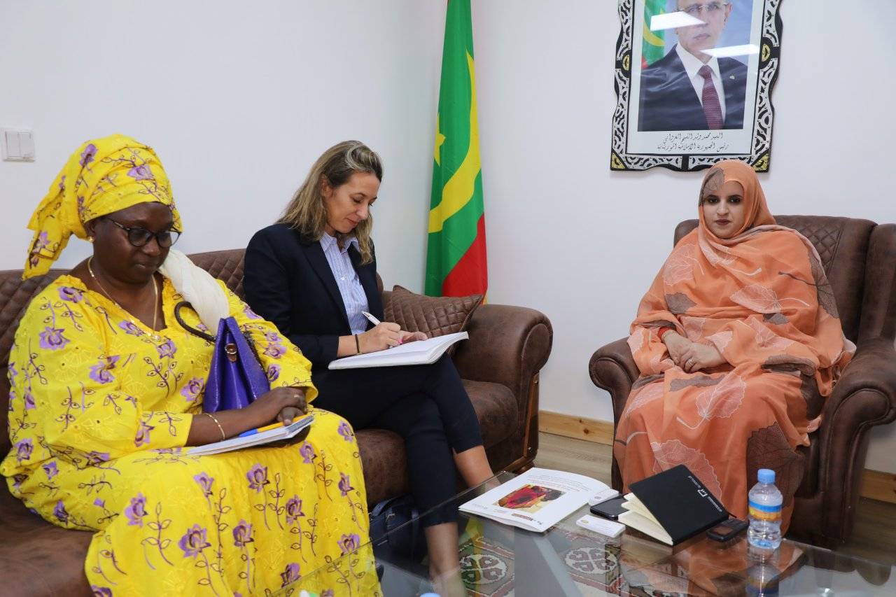 استقبلت وزيـرة العمـل الاجتماعـي والطفولـة والأسـرة، صفيـة انتهـاه، امس الخـميس، رئيسـة بعثـة منظمـة أرض الرجـال فـي بموريتانيـا، جارا كـامبلـو.