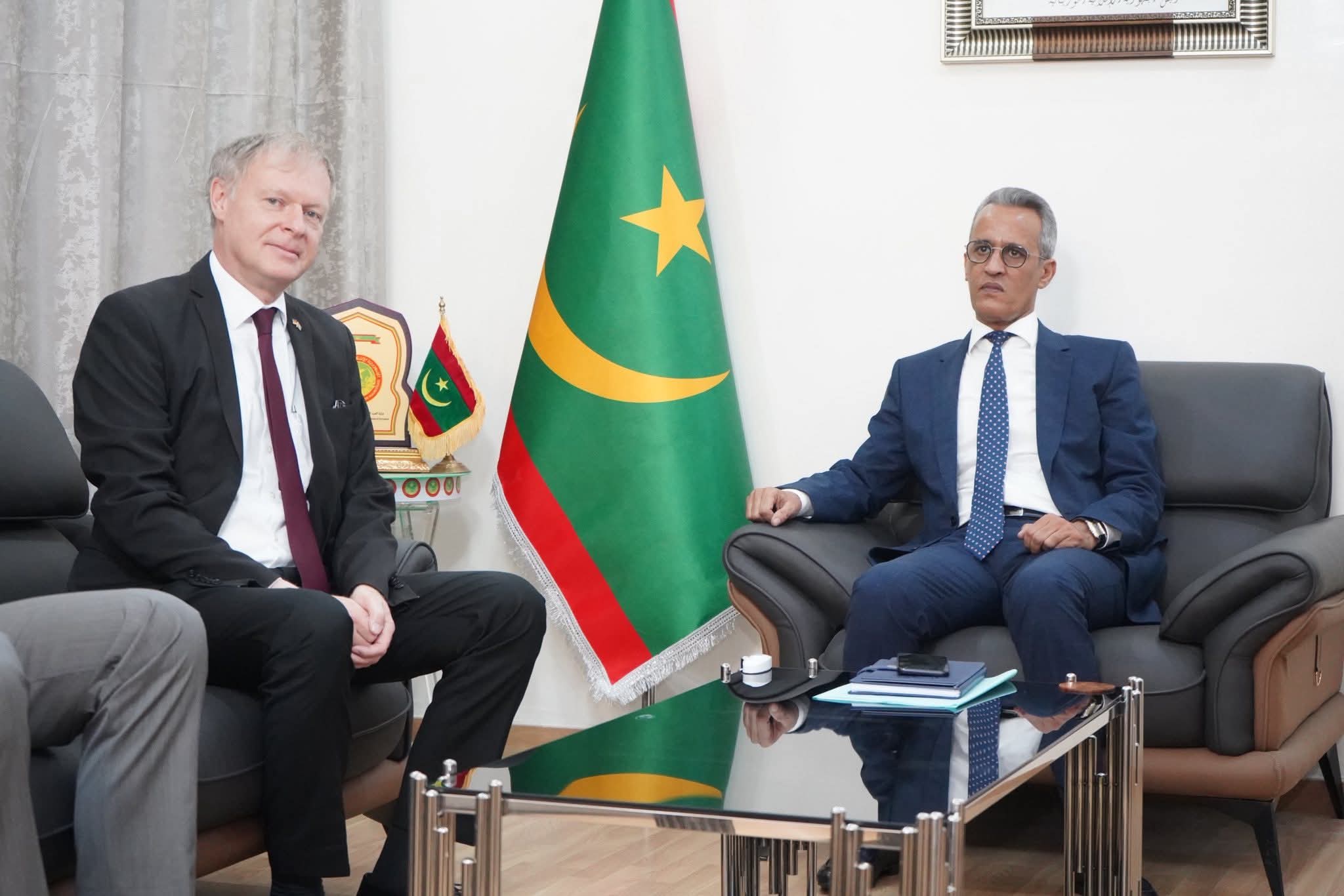 استقبل وزير الصيد والبنى التحتية البحرية والمينائية، المختار أحمد بوسيف، اليوم بمكتبه،  فلوريان رايندل، سفير جمهورية ألمانيا الاتحادية المعتمد في بلادنا.