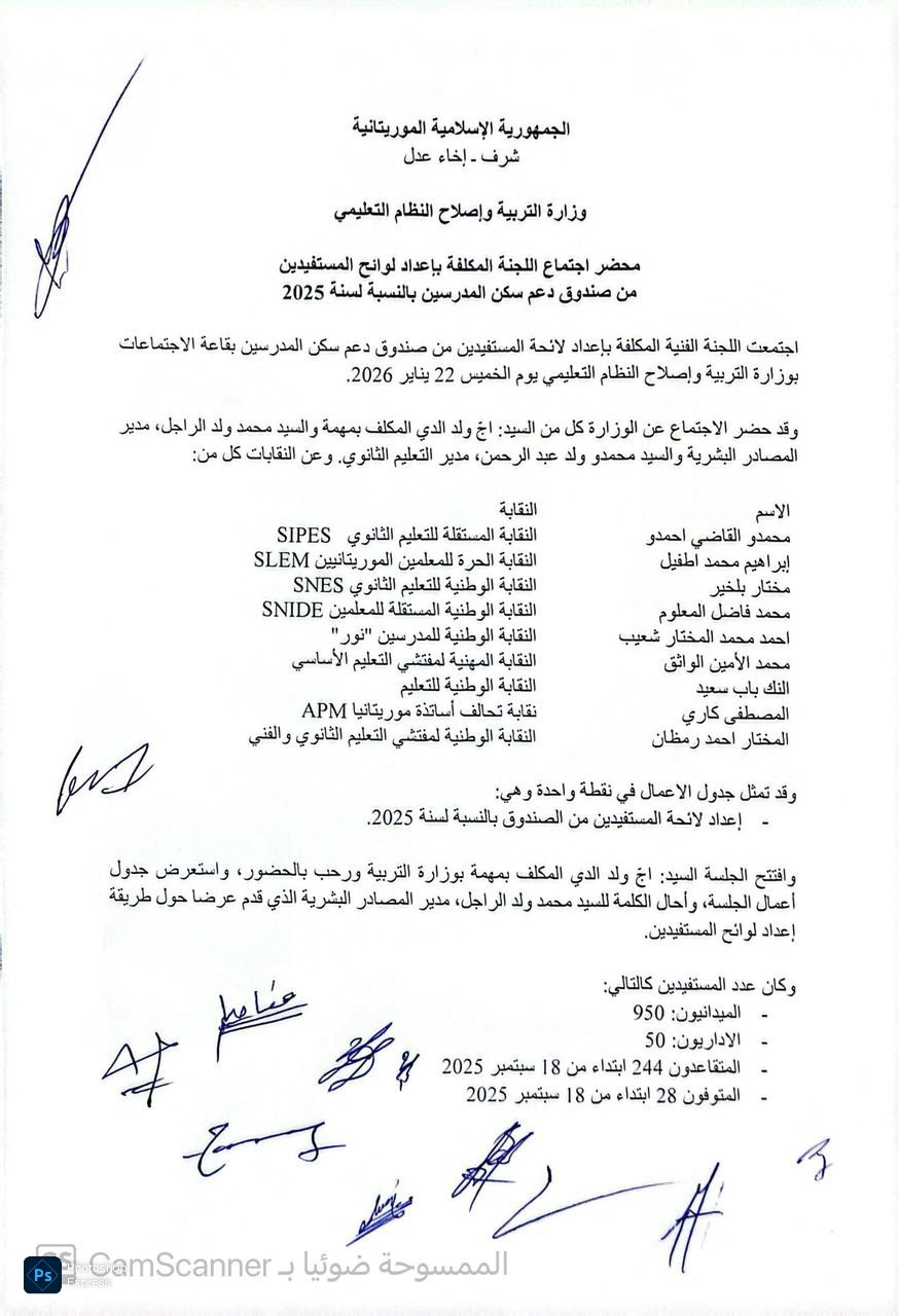 توصلت اللجنة الفنية المكلفة بإعداد لوائح المستفيدين من صندوق دعم سكن المدرسين إلى اتفاق يقضي بإدراج ألف مدرس ضمن الدفعة الأولى من المستفيدين، من بينهم 950 مدرسًا ميدانيًا و50 إداريًا، في خطوة تهدف إلى تعزيز الاستقرار الاجتماعي للكوادر التربوية.