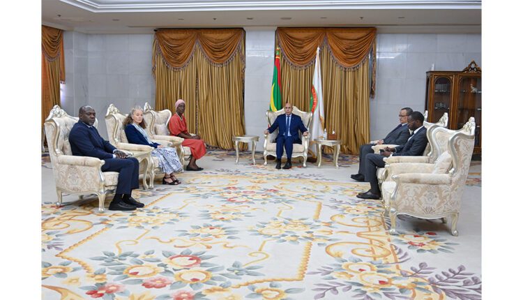 استقبل رئيس الجمهورية، محمد ولد الشيخ الغزواني، ظهر اليوم الثلاثاء بالقصر الرئاسي في نواكشوط، بعثة من الأمم المتحدة برئاسة الممثلة الخاصة المساعدة للأمين العام للأمم المتحدة لغرب إفريقيا ومنطقة الساحل، السيدة جيوفاني بيها.