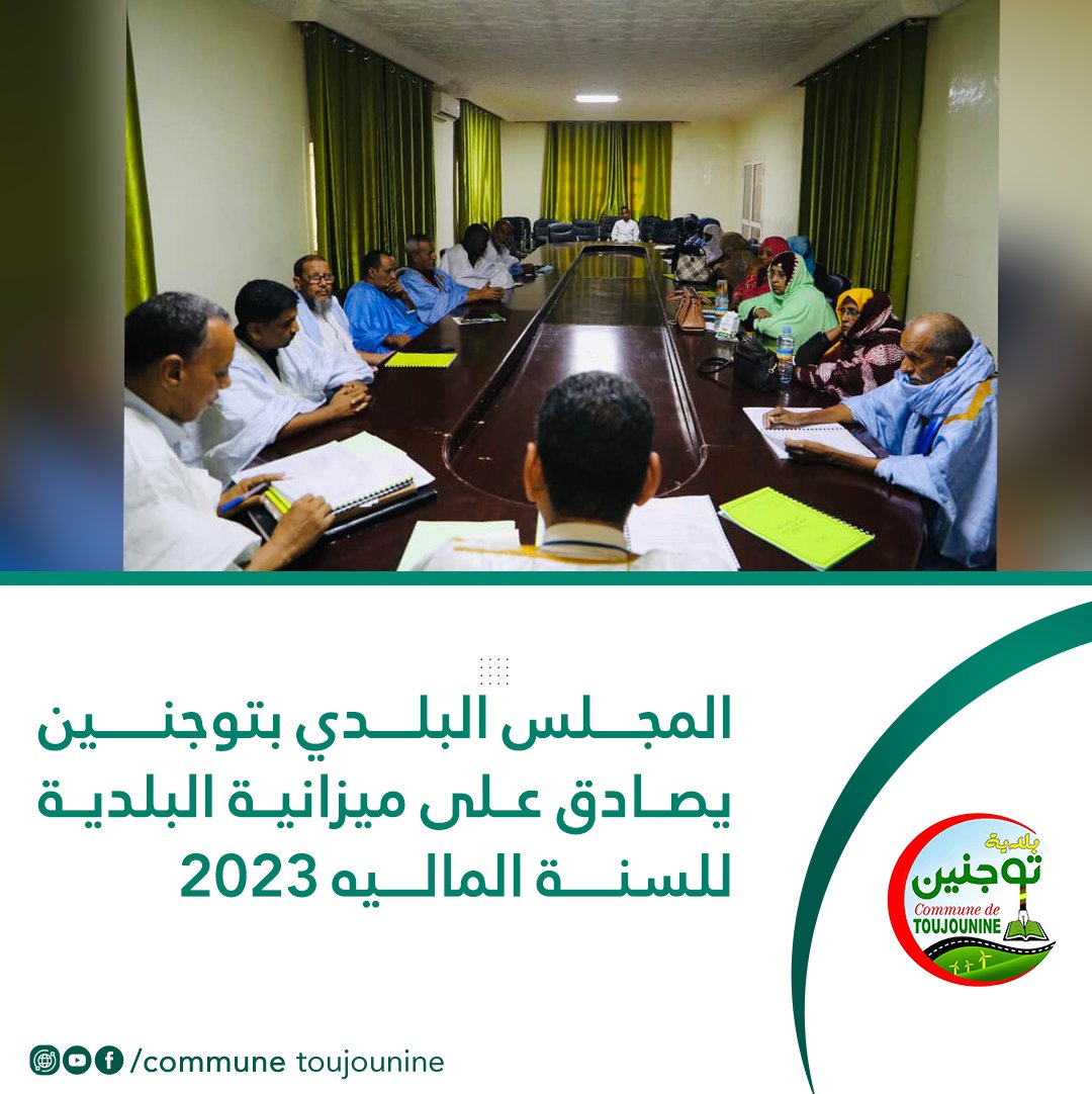 اجتمع المجلس البلدي لتوجنين يوم الإثنين الموافق 2022/11/21 في دورته العادية الرابعة لسنة 2022 برئاسة الدكتور محمد الأمين سيدي المختار شعيب، عمدة البلدية وبحضور سلطة الوصاية ممثلة بالحاكم آدم اردو حسن جا، وقد درس المجلس وصادق على المداولة المتعلقة بميزانية البلدية لسنة 2023 والمداولات الملحقة بها.