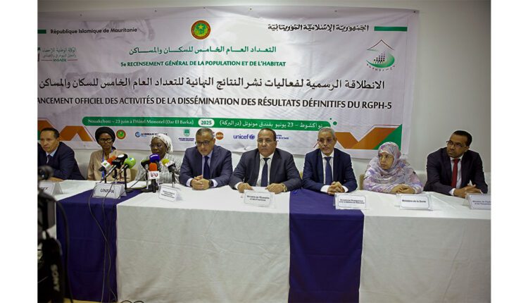 أعلن الأمين العام لوزارة الاقتصاد والمالية يعقوب ولد أحمد عيشه، اليوم، الانطلاقة الرسمية لنشر النتائج النهائية للتعداد العام الخامس للسكان والمساكن، والذي كشف أن إجمالي عدد سكان موريتانيا بلغ 4,927,532 نسمة في عام 2023.