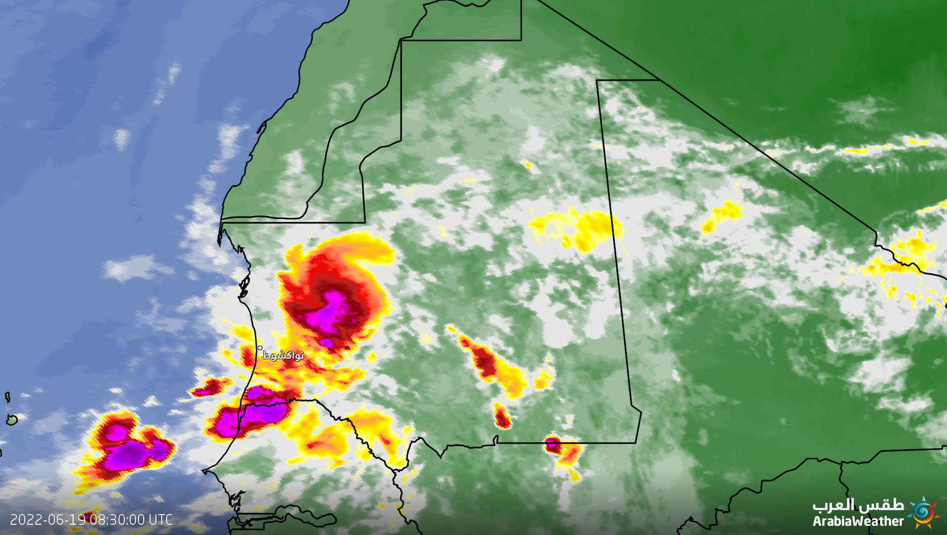 من المتوقع أن يكون الطقس في نواكشوط اليوم غائماً نهاراً مع هطول زخات رعدية من الأمطار وتكون درجة الحرارة العظمى 25°م وهي أقل بـ4°م من يوم أمس. سيكون الطقس ليلاً ضبابياً وتكون درجة الحرارة الصغرى 23°م ، مع احتمال زخات رعدية من المطر وضباب خفيف،وهي مشابهة لليلة أمس.