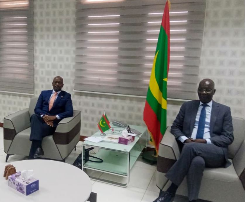 استقبل وزير الشؤون الاقتصادية وترقية القطاعات الإنتاجية، أوسمان مامودو كان، اليوم الثلاثاء بمكتبه بالوزارة، سعادة منصور انجاي، الممثل المقيم لبرنامج الأمم المتحدة الإنمائي المنتدب حديثا لبلادنا.
