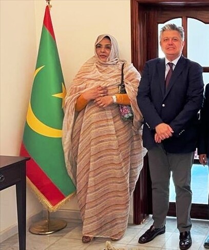 وكان في استقباله بمطار نواكشوط الدولي, الوزير الأول الموريتاني, محمد ولد بلال مسعود.