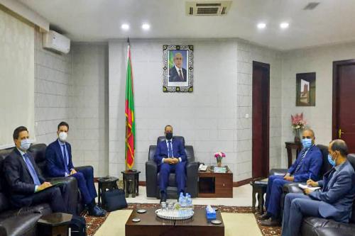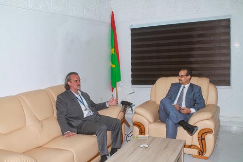 عقد وزير الشؤون الاقتصادية وترقية القطاعات الإنتاجية، السيد أوسمان مامودو كان، صباح اليوم الخميس بمكتبه في انواكشوط، لقاء مع بعثة مشتركة لدعم مشروع "اسويدد"، برئاسة، المدير العام لمنظمة غرب إفريقيا للصحة، السيد أوكولو استانلي.