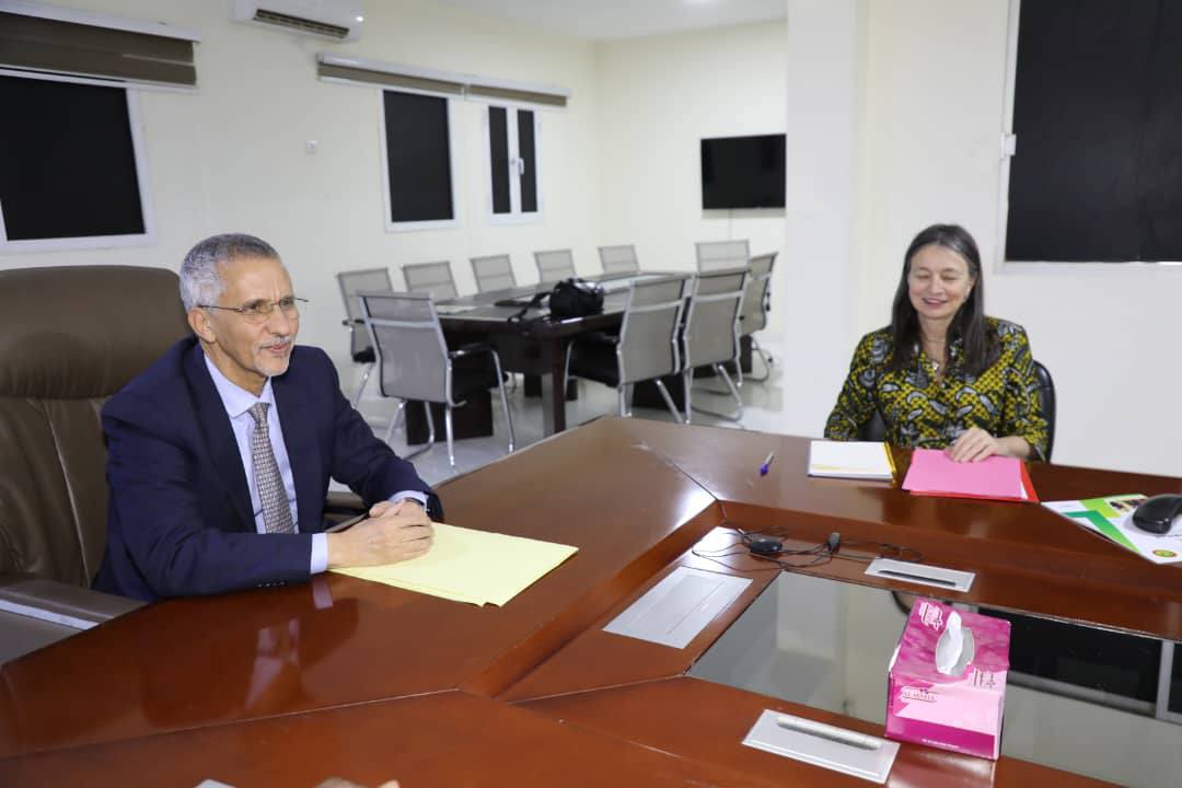 عقد مفوض حقوق الإنسان والعمل الإنساني سيدي أحمد ولد بنان اليوم الثلاثاء بنواكشوط ، لقاء عمل مع تريزا آلبيرو، ممثلة مكتب المفوضية السامية للأمم المتحدة لحقوق الإنسان في موريتانيا.