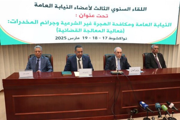 نظمت وزارة العدل صباح اليوم الاثنين بنواكشوط الغربية اللقاء السنوي الثالث لأعضاء النيابة العامة تحت عنوان: “النيابة العامة ومكافحة الهجرة غير الشرعية وجرائم المخدرات.. فعالية المعالجة القضائية”.