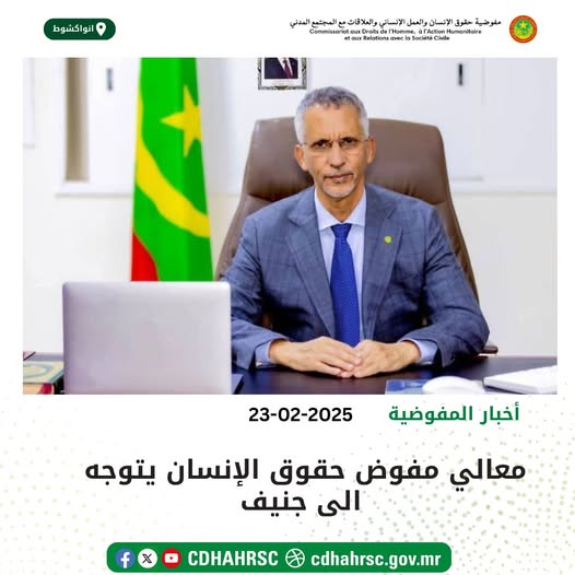 غادر مفوض حقوق الإنسان و العمل الإنساني، سيد أحمد ولد بنان، نواكشوط اليوم الأحد، متوجها إلى سويسرا، للمشاركة في أعمال الدورة 58 لمجلس حقوق الانسان التابع للامم المتحدة.