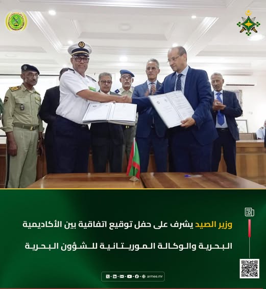 احتضنت مدينة نواذيبو توقيع اتفاقية بين الأكاديمية البحرية والوكالة الموريتانية للشؤون البحرية، سيتم بموجبها تكوين 1800 بحارا وفق النظم والاتفاقيات الدولية المعمول بها.