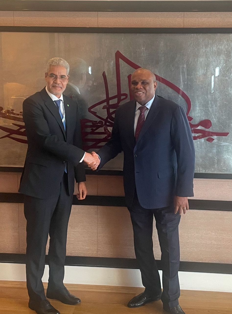عقد وزير الاقتصاد والمالية سيد احمد ولد ابوه الاثنين في الدار البيضاء على هامش أعمال القمة الإفريقية المالية المنعقدة بالمملكة المغربية لقاء مع رئيس البنك الإفريقي للإيراد والتصدير أفريكزيمبنك السيد بنديك أودي أورماه.