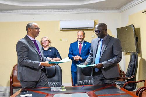 أشرف وزير التهذيب الوطني وإصلاح النظام التعليمي، الناطق باسم الحكومة محمد ماء العينين ولد أييه، بحضور المديرة التنفيذية لمنظمة "إسبانا البريطانية" اليوم الاثنين في نواكشوط، على توقيع ابروتوكول اتفاق بين الوزارة وهذه المنظمة في إطار برنامج التهذيب البيئي.