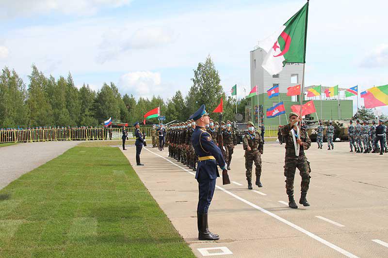 وأقيم احتفال رسمي بلقاء الفرق المشاركة، في البليدة، حسب قناة "زفيزدا" الروسية، اليوم الجمعة، من بينها فريق المظليين الروس، كما رفع بجانب العلم الجزائري العلم الروسي، بالإضافة إلى مشاركة كل من بيلاروسيا وأوزبكستان في الحفل الرسمي".
