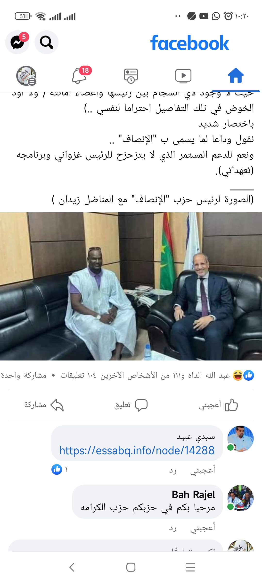 إن استقالتنا من حزب "الإنصاف" لا تعني استقالتنا من تأييد الرئيس غزواني ونهجه القويم ، فهذا الحزب ليس هو البوابة الوحيدة لدعم الرئيس غزواني وتأييده فكثيرة هي الأحزاب التي تحترم نفسها وقواعدها الجماهيرية وتؤيد الرئيس غزواني، حيث تشيد بالمنجز وتنتقد الخلل والتقصير ..