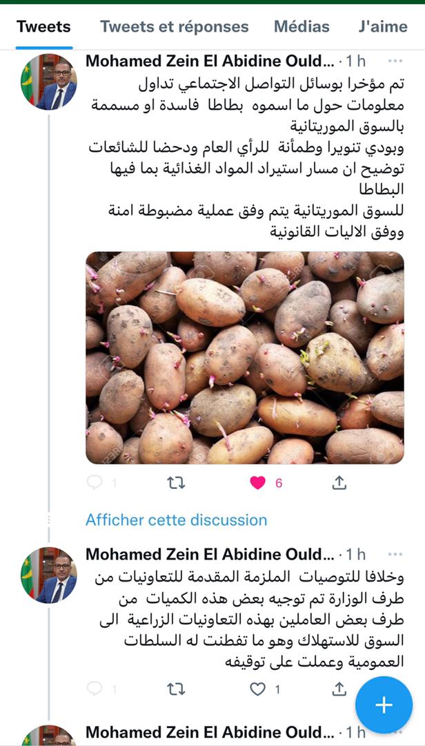 قال رئيس الاتحاد الوطني لأرباب العمل الموريتانيين زين العابدين ولد الشيخ أحمد إن مسار استيراد المواد الغذائية للسوق الموريتانية بما فيها البطاطا، يتم وفق عملية مضبوطة وآمنة، ووفق الآليات القانونية.