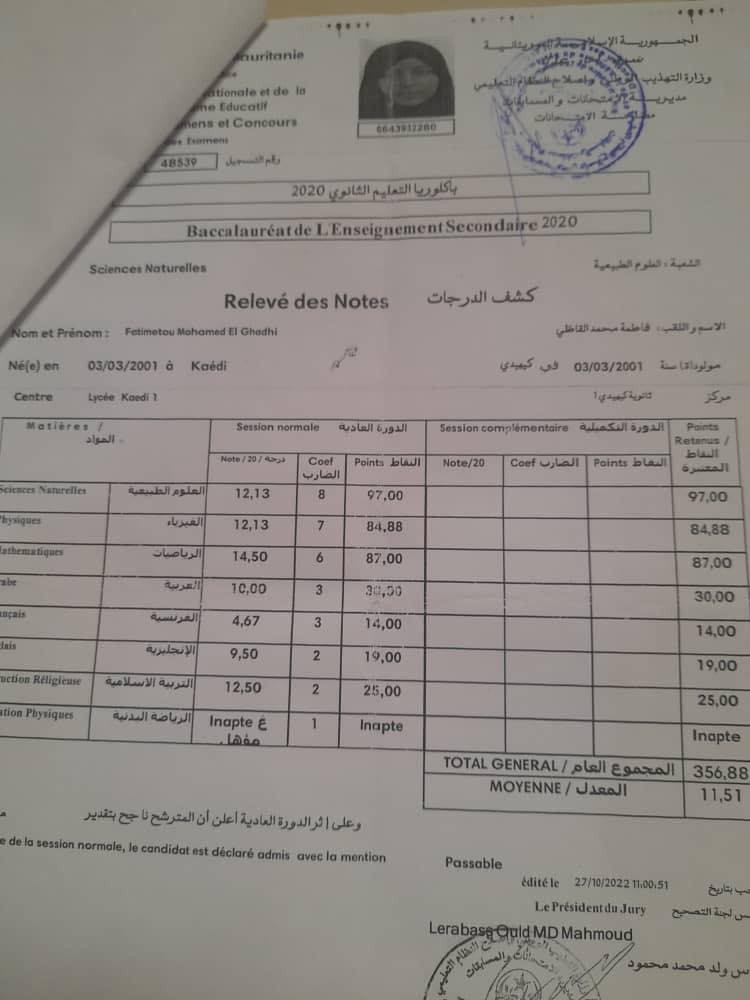 وهو غير ناجح اما الحالة الثالثة فهي لمترشح يدعي يب الخليفة صمب ممرض دولة رقمه علي اللائحة 37 و معدله في الباكلوريا 10,45 ادعي ان اسمه تم تبديله بسيدة تدعي فطمة محمد القاظي ممرضة دولة رقمها 287 و معدلها في الباكلوريا 11,51