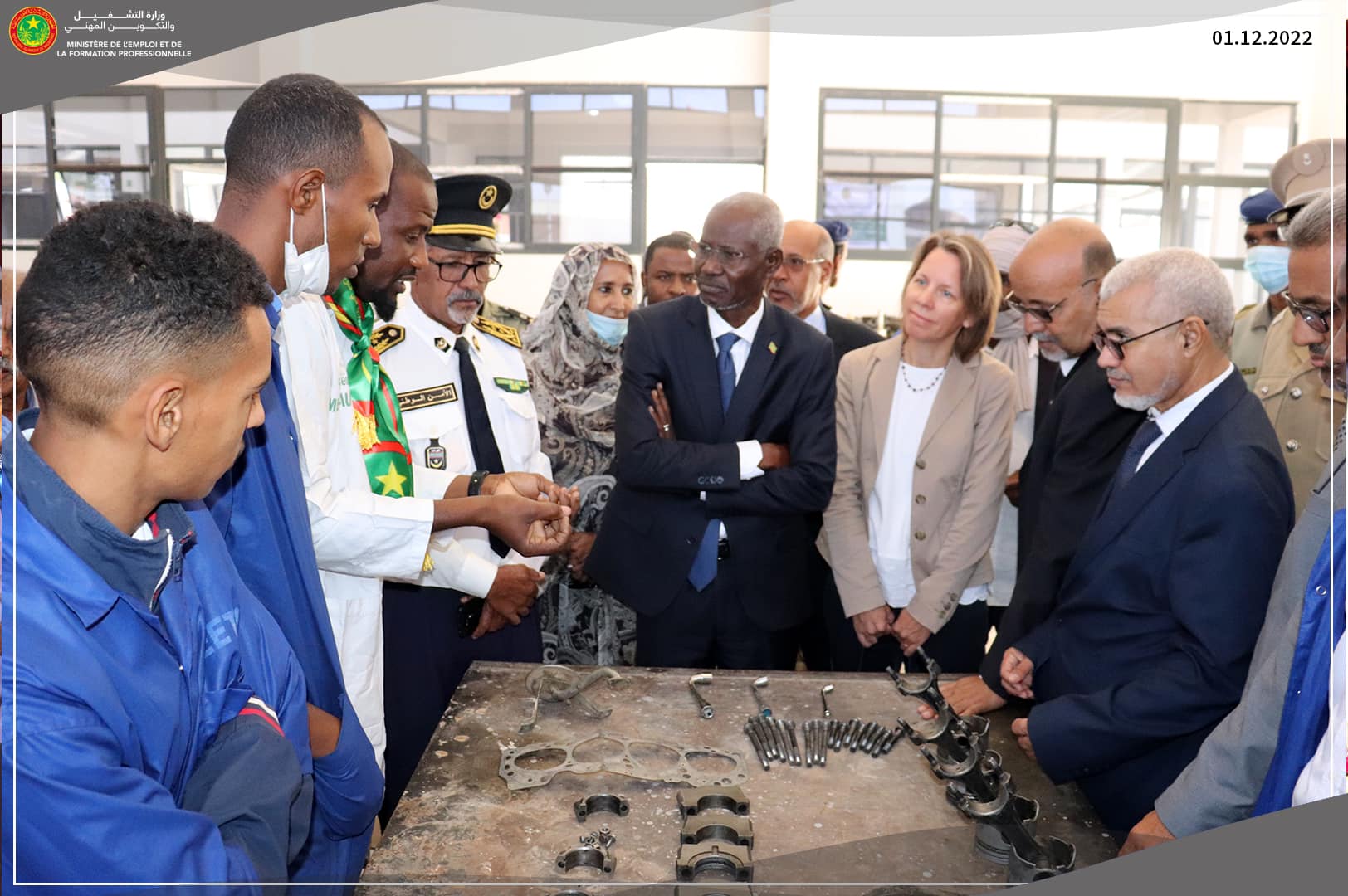 أشرف وزير التشغيل والتكوين المهني، نيانغ مامادو، على حفل تدشين مدرسة التعليم التقني والتكوين المهني بأطار، بحضور سفيرة جمهورية ألمانياالاتحادية إيزابيل حنين، والسلطات الإدارية والعسكرية بالمدينة.