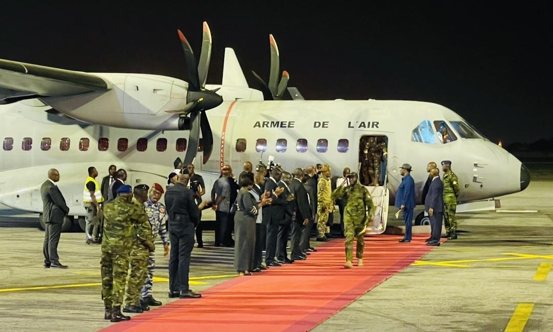 وقد نزل الجنود من الطائرة، وهم يرتدون الزي العسكري الإيفواري، ويحملون أعلاما صغيرة لبلادهم، وحيوا جميعهم واحدا تلو الآخر الرئيس واتارا.