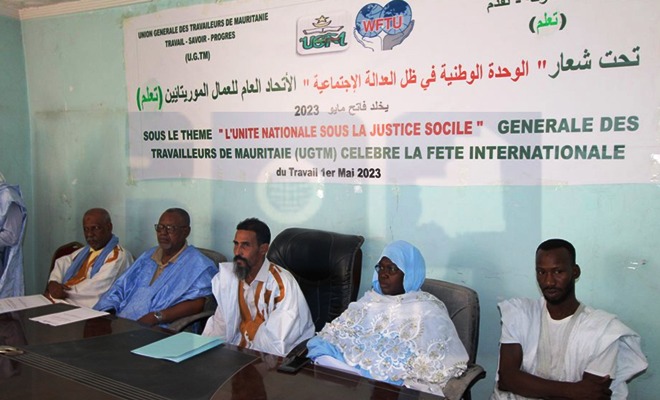 وأوضح الأمين العام للاتحاد الشيخ سيد أحمد ولد سيد أم، أن الاحتفال اليوم بهذا العيد الدولي يرمز للنضال الدؤوب والمسالم من أجل القضاء على الاستغلال بين البشر ، مضيفا أن الاتحاد يود أن يكون هذا اليوم فاتحة عهد جديد لتلبية مطالب النقابات العمالية والتفاهم مع الشركاء الاجتماعيين للنهوض بالتنمية لصالح موريتانيا وأن انفتاح نوافذ عديدة في الآونة الأخيرة في برنامج السيد رئيس الجمهورية محمد ولد الشيخ الغزواني ساهم في تهدئة الأحوال، و ما تم الإعلان عنه من إظهار إرادة ترسم و تطبيق سياسة هدفها استقرار الشعب على أرضه .
