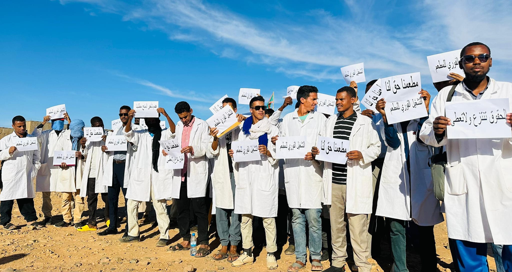 وقد رفع الطلاب المحتجون خلال وقفة احتجاجية نظموها اليوم لافتات تحمل عبارة التشغيل الفوري للمطعم " "مطعمنا حق لنا"و "الحقوق تنتزع ولا تعطى "