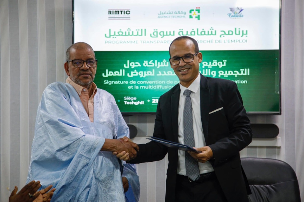 وجرى توقيع الاتفاقيتين، بالمقر المركزي للوكالة الوطنية للتشغيل في نواكشوط، بحضور ممثلي بوابة "بيتا للاستشارات Beta Conseils "الرقمية المتخصصة في مجال التوظيف ونشر الأخبار الاقتصادية في موريتانيا ومنصة "ريم تيك RIMTIC" المتخصصة في مجال التوظيف، ونشر المناقصات في موريتانيا، بالإضافة لعدد من مساعدي المدير العام للوكالة الوطنية للتشغيل.