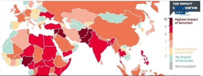 المؤشر الذي يصنف 163 دولة وفقا للخسائر التي طالت كل منها بسبب الحوادث الإرهابية، من حيث عدد الحوادث والوفيات والمصابين والخسائر في الممتلكات، وضع بوركينافاسو في الرتبة الأولى عالميا باعتبارها أكثر بلد في العالم يواجه مخاطر إرهابية جد مرتفعة.