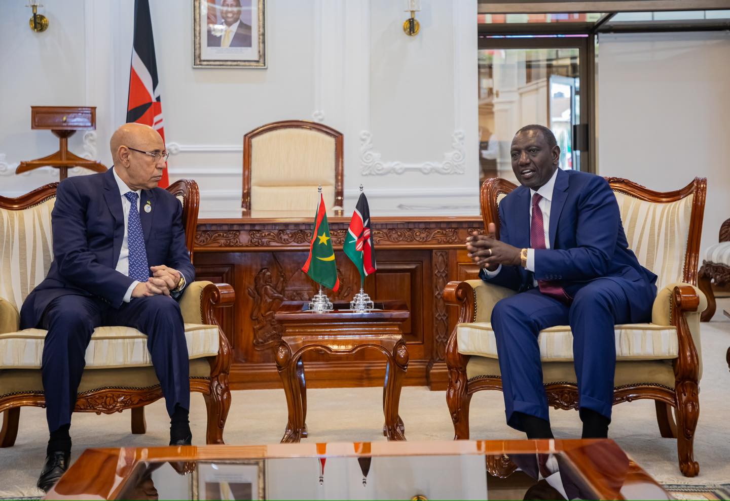التقى رئيس الجمهورية، رئيس الاتحاد الإفريقي محمد ولد الشيخ الغزواني، مساء اليوم الإثنين في العاصمة الكينية نيروبي، على هامش قمة رؤساء الدول الإفريقية و المؤسسة الدولية للتنمية، بفخامة الرئيس ويليام ساموي روتو، رئيس جمهورية كينيا.