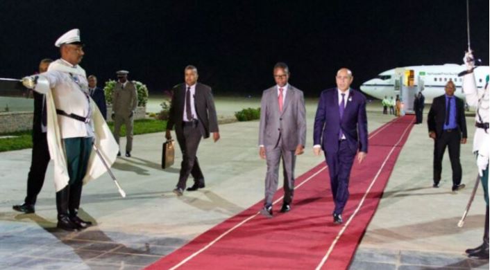 واستقبل رئيس الجمهورية بمطار نواكشوط الدولي أم التونسي من طرف الوزير الأول محمد ولد بلال مسعود، والوزير الأمين العام لرئاسة الجمهورية، والوزير المستشار برئاسة الجمهورية، وعدد من أعضاء الحكومة، وقائد الأركان الخاصة لرئيس الجمهورية، والمديرة المساعدة لديوان رئيس الجمهورية، ووالي نواكشوط الغربية، ورئيسة جهة نواكشوط.