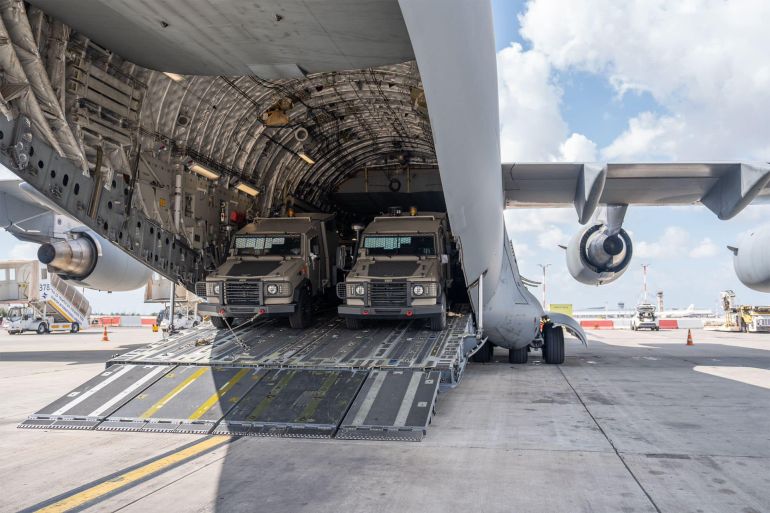 ونقلت رويترز عن السيناتور جيم ريش، العضو الجمهوري في لجنة العلاقات الخارجية بمجلس الشيوخ، القول إن الولايات المتحدة سترسل مجموعة كبيرة من المعدات العسكرية إلى إسرائيل، تضم ذخائر هجومية، وأخرى تحول القنابل الغبية إلى أسلحة دقيقة التوجيه، وقذائف دبابات ومدافع مورتر ومركبات تكتيكية مدرعة.