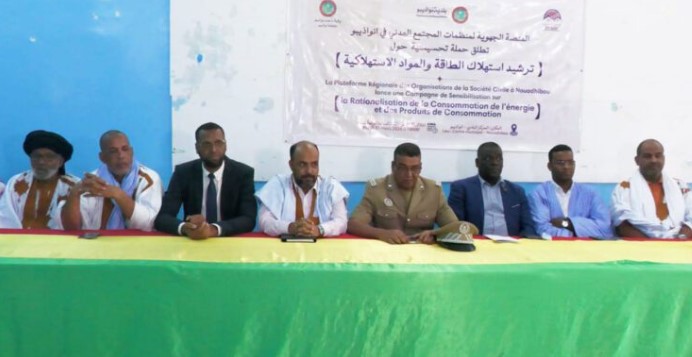 أشرف حاكم مقاطعة نواذيبو سيد احمد ولد احويبيب مساء أمس الثلاثاء من مركز المعرفة للجميع بمدينة نواذيبو على إطلاق حملة تحسيسية منظمة من طرف المنصة الجهوية للمجتمع المدني من أجل ترشيد استهلاك الطاقة والمواد الاستهلاكية.