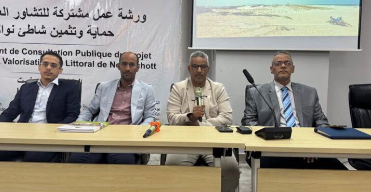 نظمت وزارة الإسكان والعمران والاستصلاح الترابي، اليوم الاربعاء ورشة تشاورية مخصصة لبلدية تفرغ زينة حول مشروع حماية وتثمين شاطئ نواكشوط، وذلك بالتعاون مع شركة استصلاح شاطئ نواكشوط.