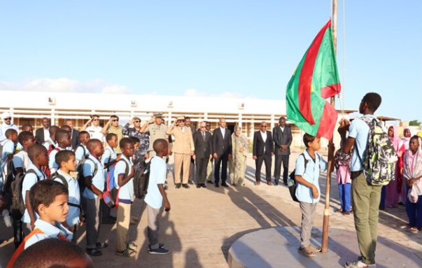 ترأس والي ولاية تيرس الزمور السيد محمد المختار ولد عبدي، صباح اليوم الإثنين بمدرسة “بطحت اسبط” بحي 600 وحدة سكنية بمدينة ازويرات، فعاليات رفع العلم الوطني على أنغام النشيد الوطني من طرف تلاميذ المدرسة.