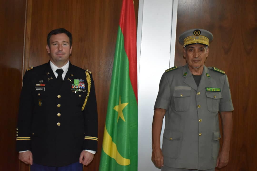 وشح اللواء حبيب الله أحمدو قائد الأركان العامة للجيوش المساعد يوم أمس بمكتبه، باسم رئيس الجمهورية الملحق العسكري الأمريكي المقدم جاسون ويمبرلي بوسام فارس من نظام الاستحقاق الوطني، وذلك بمناسبة انتهاء مأموريته بموريتانيا.