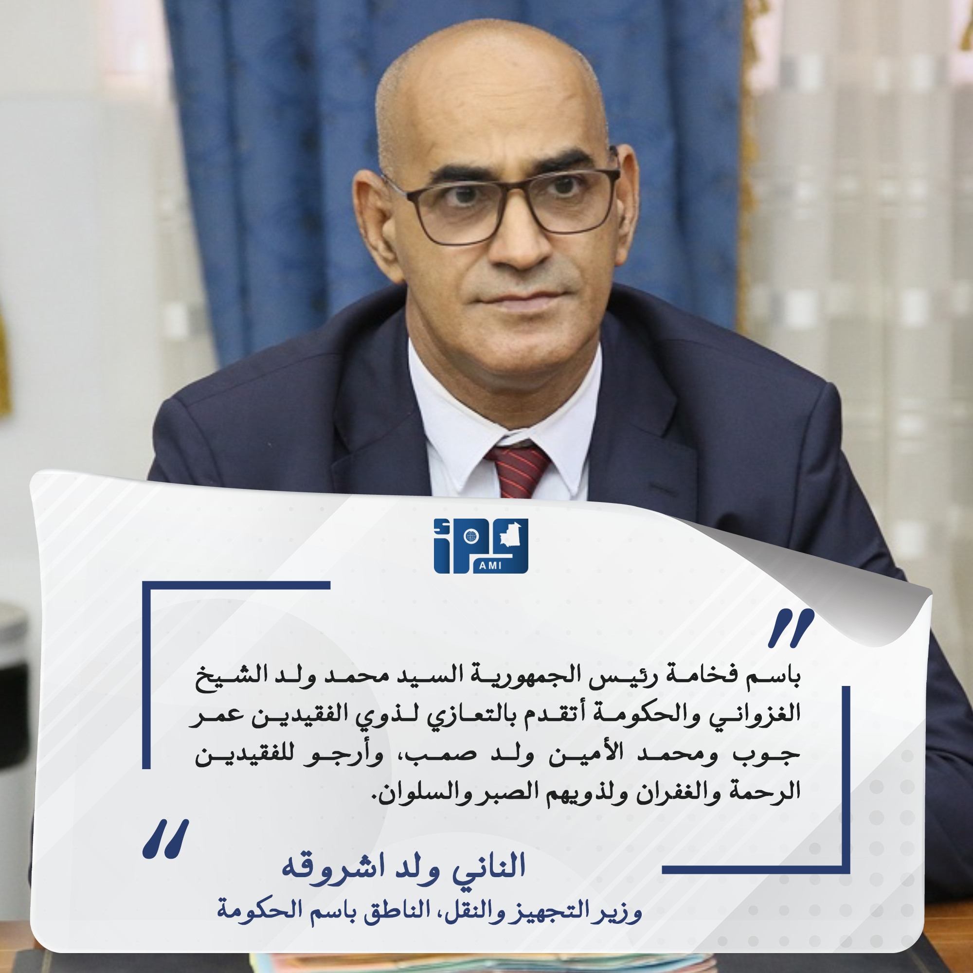 باسم فخامة رئيس الجمهورية السيد محمد ولد الشيخ الغزواني والحكومة أتقدم بالتعازي لذوي الفقيدين عمر جوب ومحمد الأمين ولد صمب، وأرجو للفقيدين الرحمة والغفران ولذويهم الصبر والسلوان.
