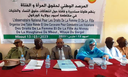 أشرف والي كوركول أحمدنا ولد سيد أب اليوم الإثنين في مدينة امبود على فعاليات افتتاح طاولة مستديرة و انطلاق قافلة تحسيسية حول انتهاكات حقوق النساء و الفتيات في مقاطعة أمبود .