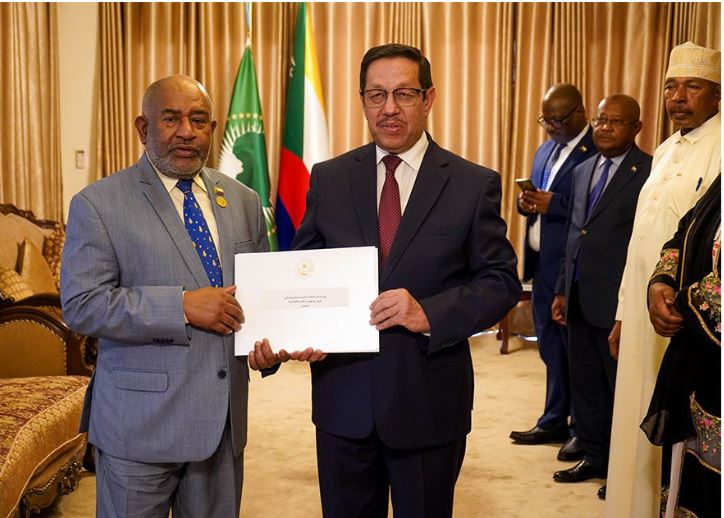 قدم السفير الحسين سيدي عبد الله الديه، اليوم الاثنين في قصر بيت السلام بموروني، ل غزالي عثماني، أوراق اعتماده بصفته سفيرا فوق العادة وكامل السلطة للجمهورية الإسلامية الموريتانية لدى جمهورية القمر المتحدة، مقيما في جمهورية مصر العربية.