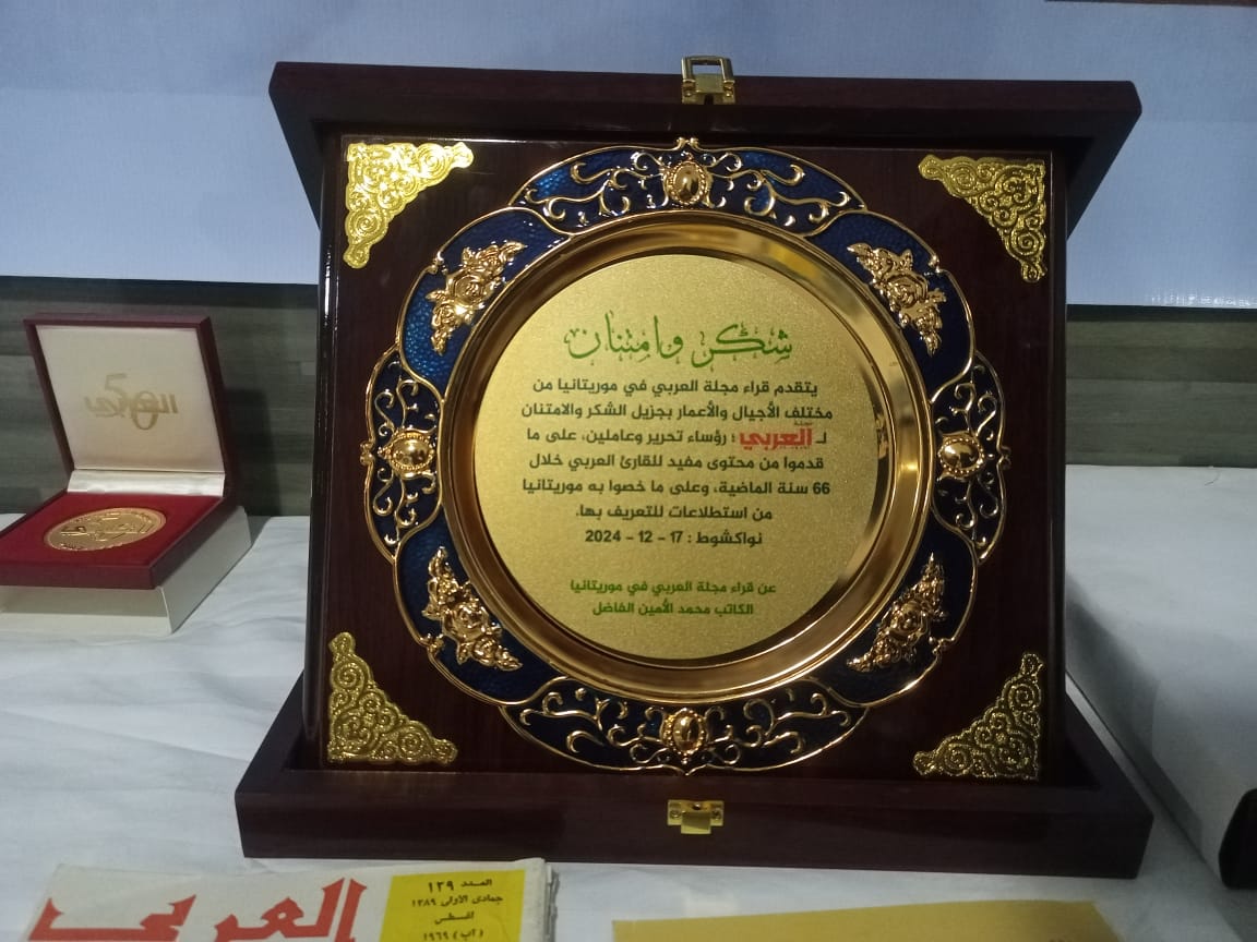 في مبادرة هي الأولى من نوعها، نظم قدامى قراء مجلة العربي في موريتانيا حفلا تكريميا لمجلة العربي، وذلك بحضور فريق المجلة المشارك في تغطية النسخة الثالثة عشرة من مهرجان مدائن التراث بمدينة شنقيط.