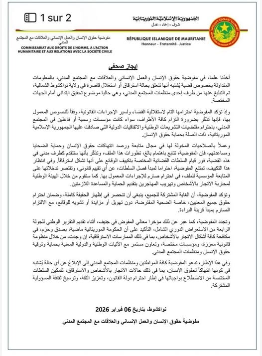 مفوضية حقوق الإنسان : أخذنا علما بقضية اشتباه بحالة استرقاق أو استغلال قاصرة