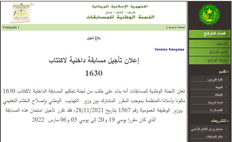 أعلنت اللجنة الوطنية للمسابقات تأجيل موعد إجراء المسابقة الداخلية لاكتتاب 1630 مكونا وأستاذا إلى يومي 05 و06 مارس 2022.