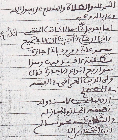 محمد الحسن بن أحمدو الخديم وهو آخر من كتب له إجازته المطلقة في معارف المحظرة.