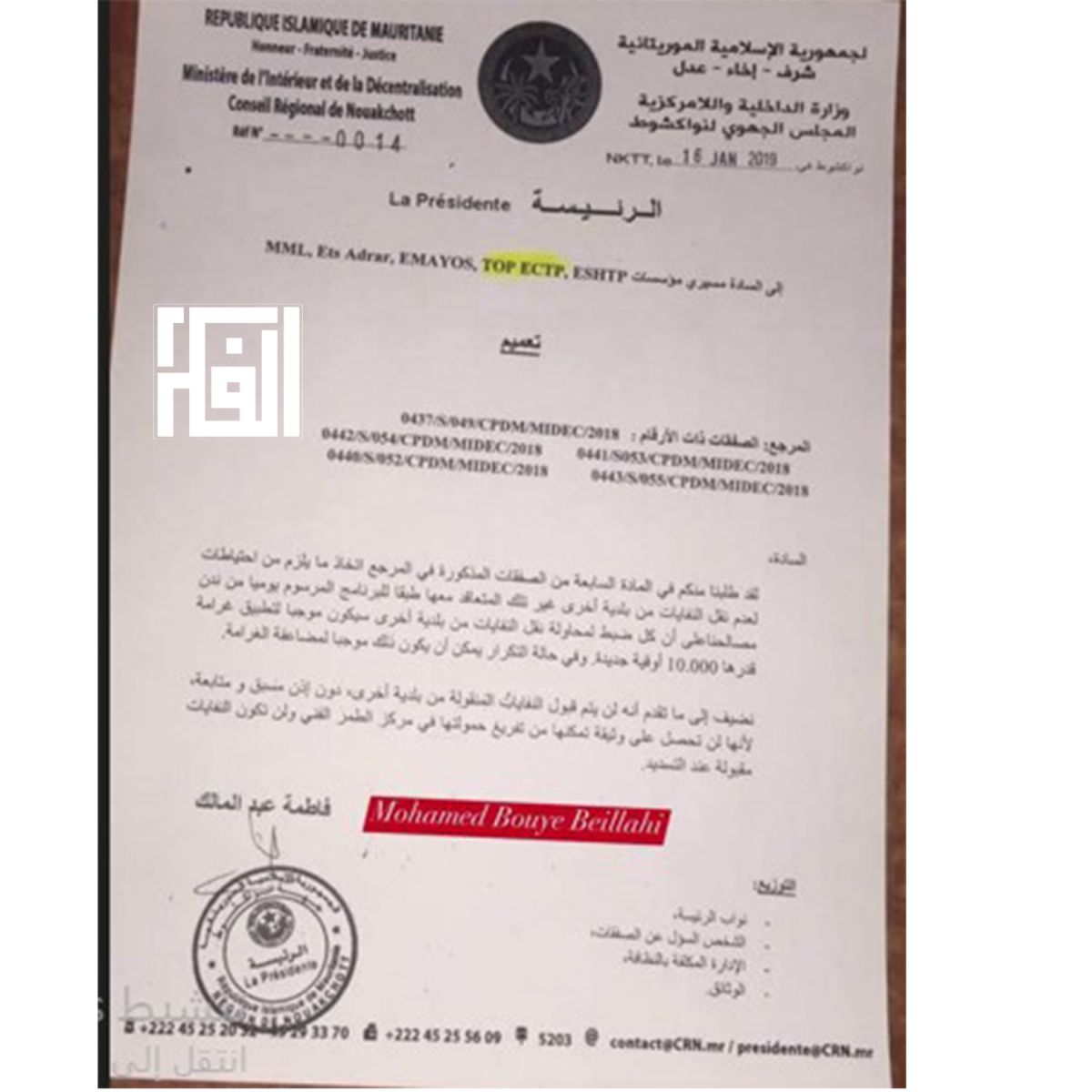 ونبهت الدراسة إلى أن تصريح إنشاء " مكب نواكشوط "، في منطقة تيفريت، من طرف وزارة المالية بالمقرر رقم 095، الصادر بتاريخ 15 يونيو 2004، لصالح وزارة الداخلية، قد شابه خرق قانوني واضح، إذ أن هذه المساحة من الأرض، لا يمنحها الا مجلس الوزراء، ولا يحق لوزارة المالية منحها.
