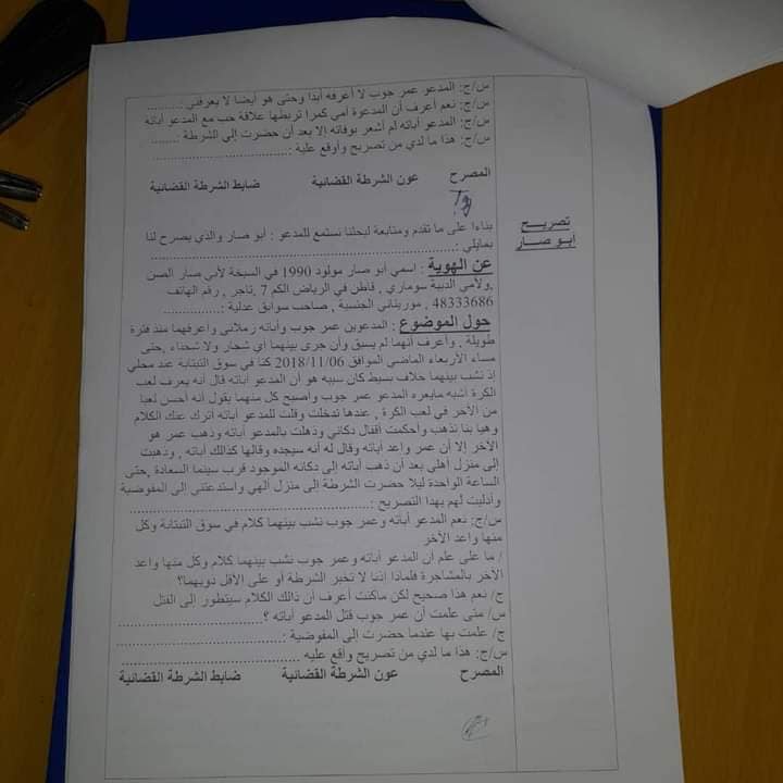 ووفق هذا المحضر يتحدث القتيل أن والده طلب منه تسليم نفسه للشرطة، وأنه ركب مع والده في سيارته، قبل أن يلحق بهما عناصر من الشرطة بزي مدني حيث نقلوه إلى مفوضية السبخة..jpg)