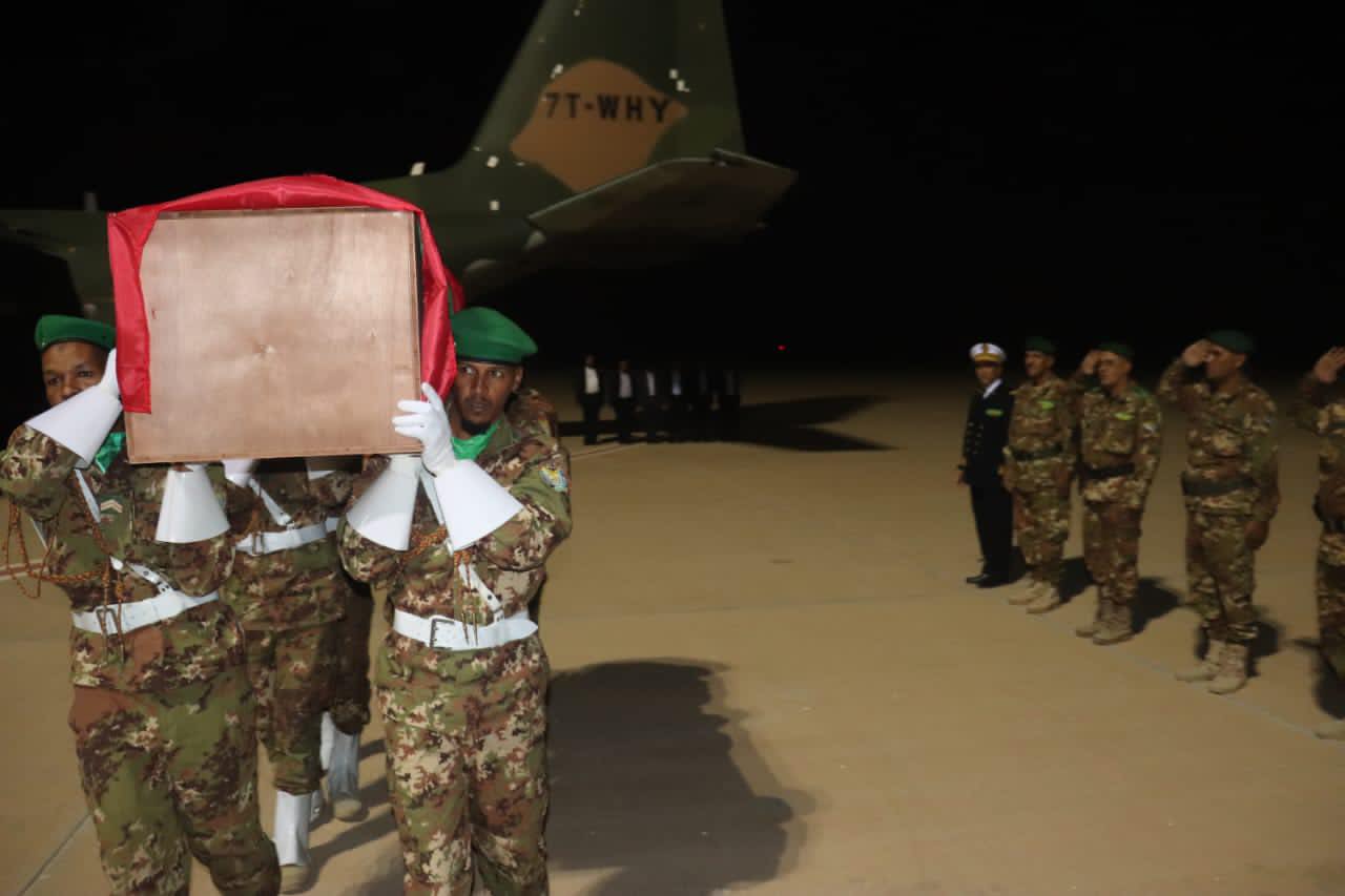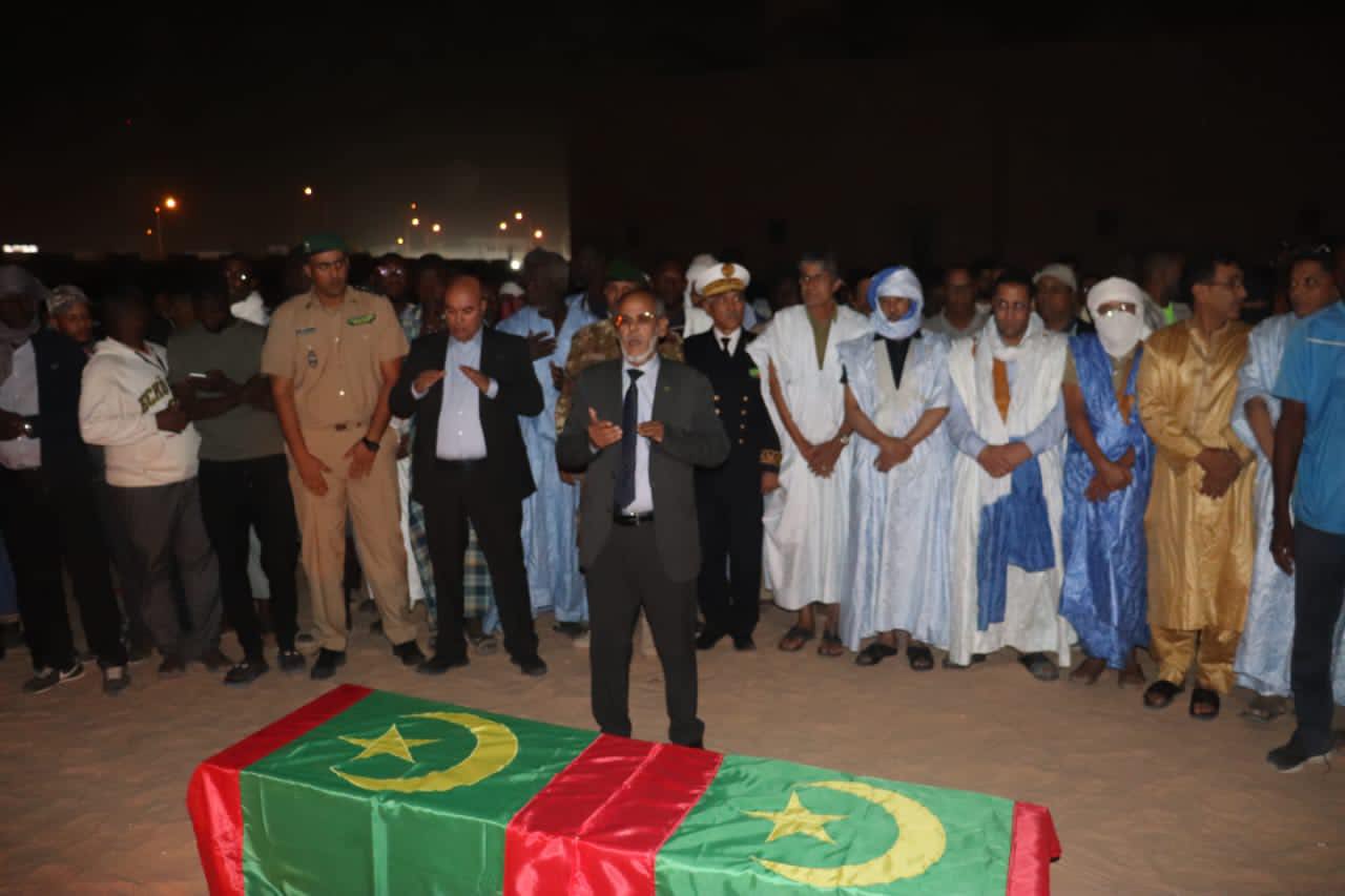 وترأس الفريق البحري اسلكو ولد الشيخ الولي قائد الأركان الخاصة لرئاسة الجمهورية مراسيم تشييع جثمان الفقيد، التي أقيمت في مطار أم التونسي ليلة الجمعة الماضية.