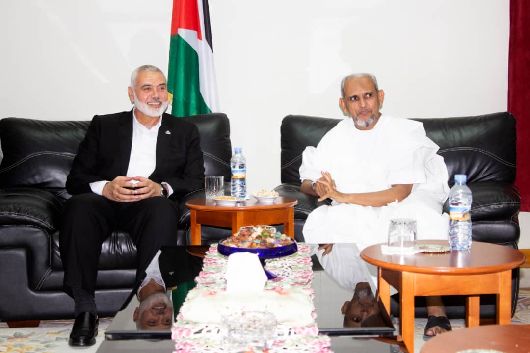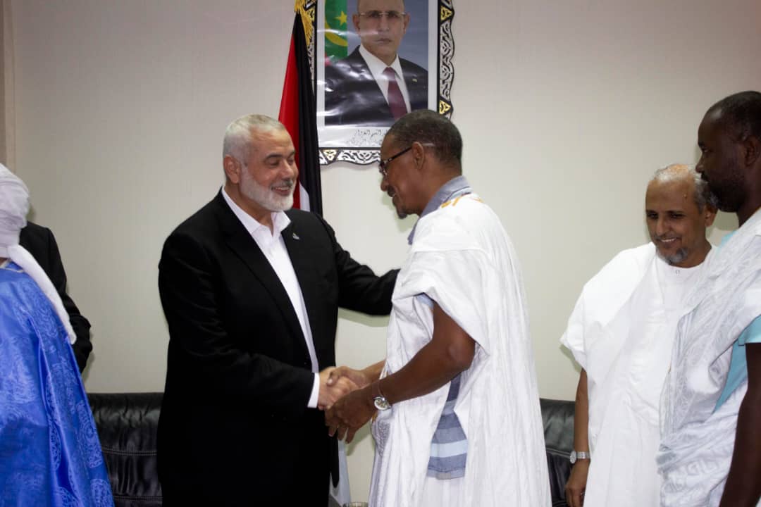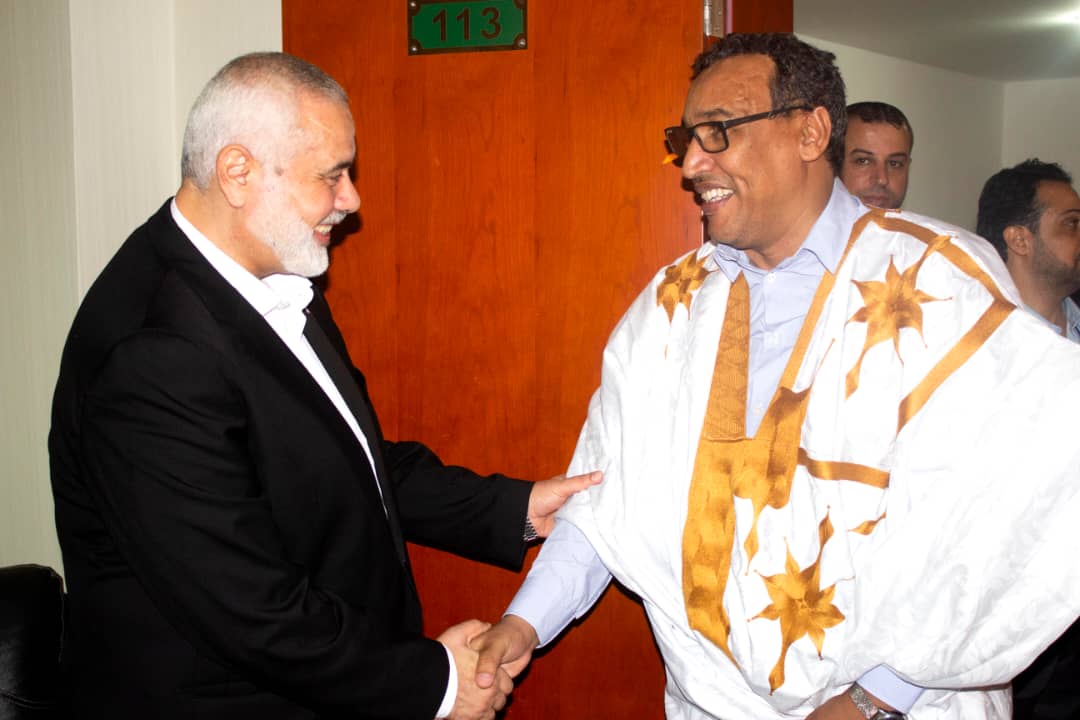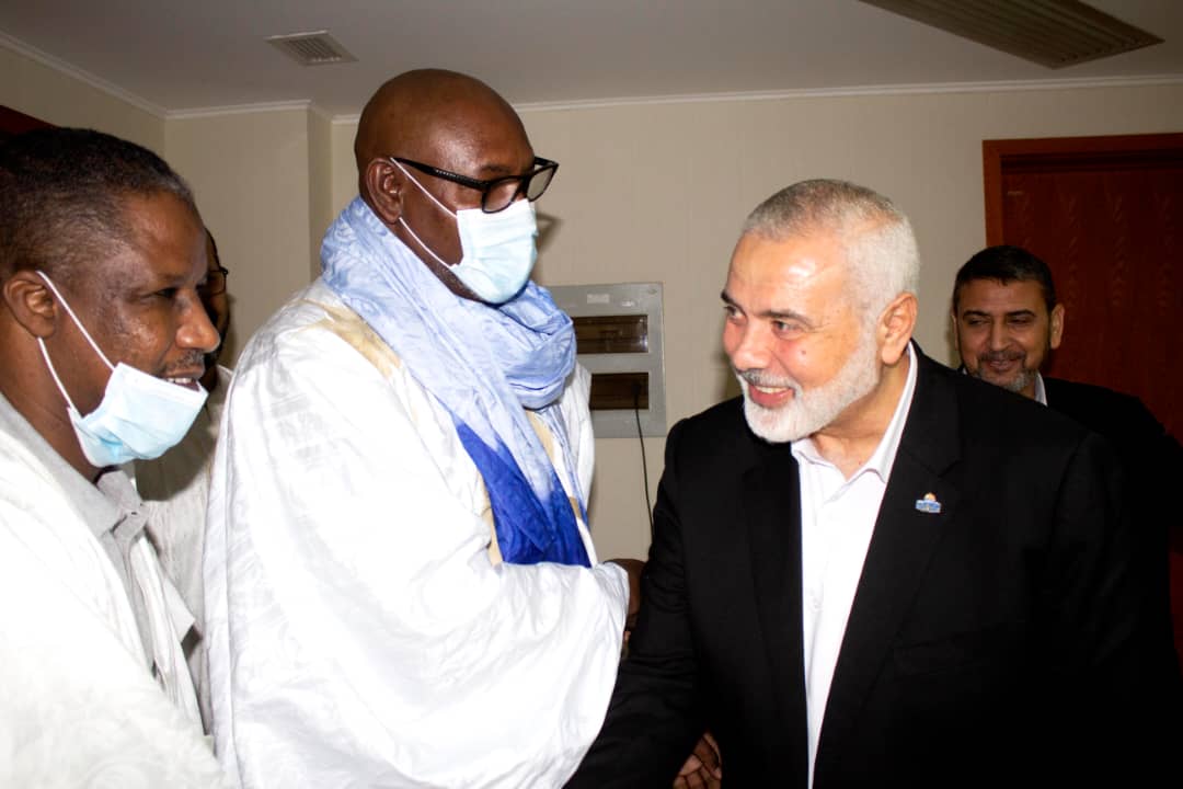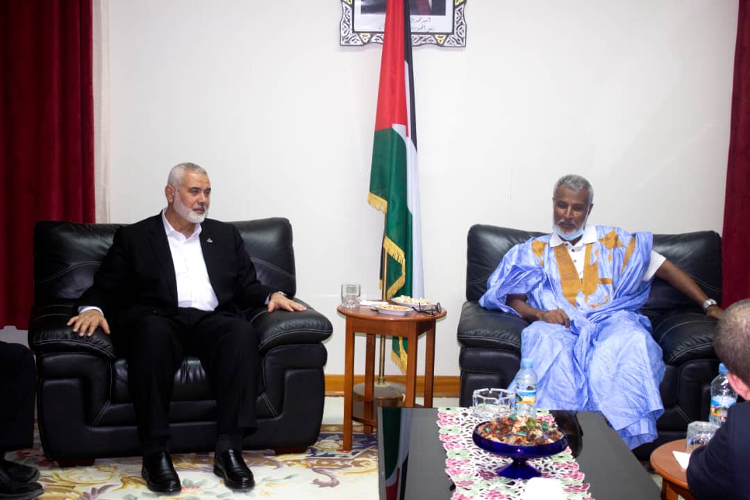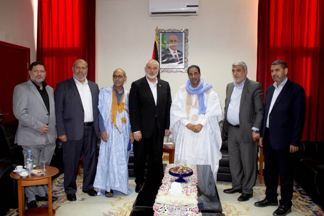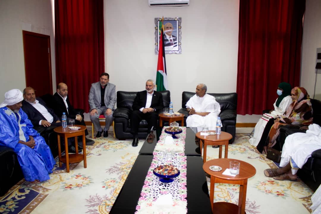 إضافة إلى قيادات بالرباط الوطني لنصرة الشعب الفلسطيني، ويزور هنية موريتانيا بدعوة من الرباط الوطني رفقة وفد من قيادة حركة المقاومة الإسلامية حماس، وقد جرى استقبال هنية والوفد المرافق له من طرف رئيس الجمهورية محمد ولد الشيخ الغزواني.